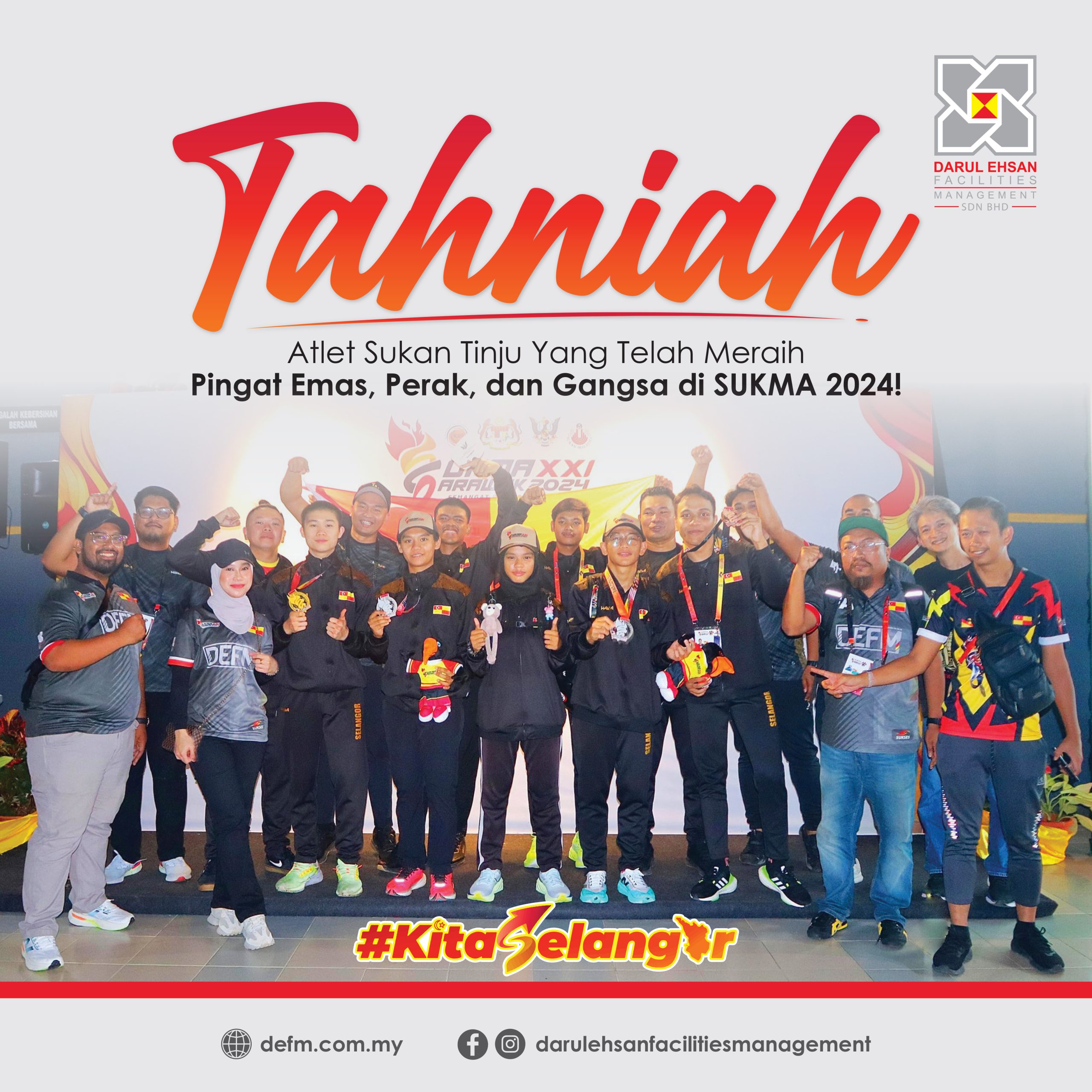 DEFM Selangor merasa bangga dapat menjadi sebahagian daripada kejayaan Kontinjen Sukan Tinju Selangor dengan memberikan sokongan dana yang bertujuan untuk meningkatkan semangat pemain serta menambahbaik peralatan sukan dan kebajikan para atlet.