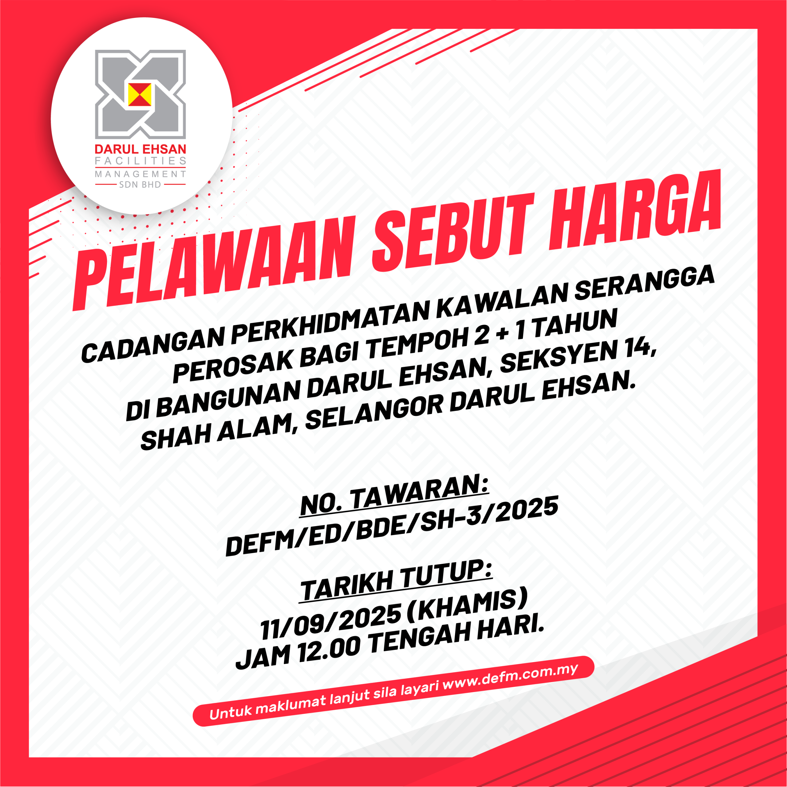CADANGAN PERKHIDMATAN KAWALAN SERANGGA PEROSAK BAGI TEMPOH 2 + 1 TAHUN DI BANGUNAN DARUL EHSAN, SEKSYEN 14, SHAH ALAM, SELANGOR DARUL EHSAN
