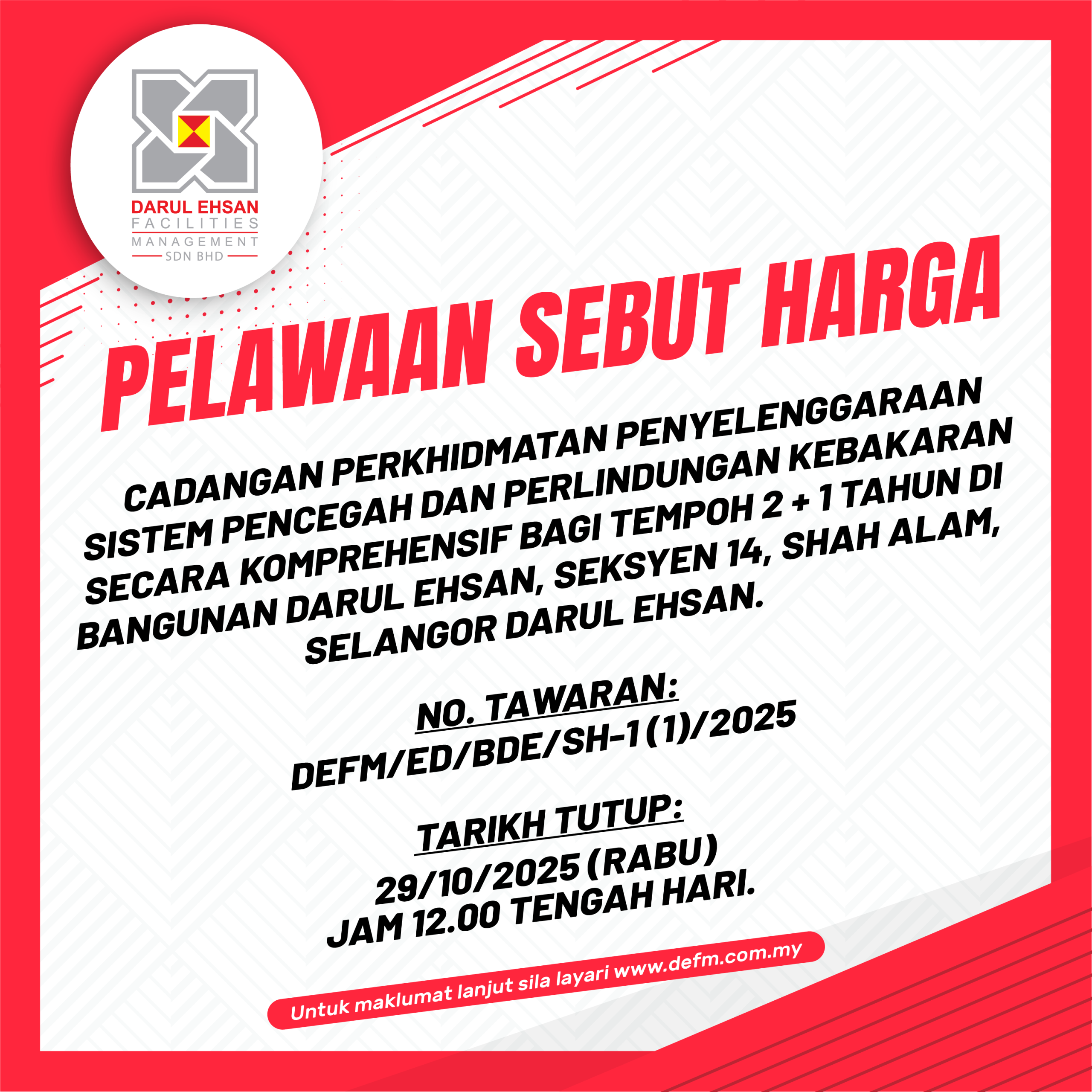 CADANGAN PERKHIDMATAN PENYELENGGARAAN SISTEM PENCEGAH DAN PERLINDUNGAN KEBAKARAN SECARA KOMPREHENSIF BAGI TEMPOH 2 +1 TAHUN DI BANGUNAN DARUL EHSAN, SEKSYEN 14, SHAH ALAM, SELANGOR DARUL EHSAN
