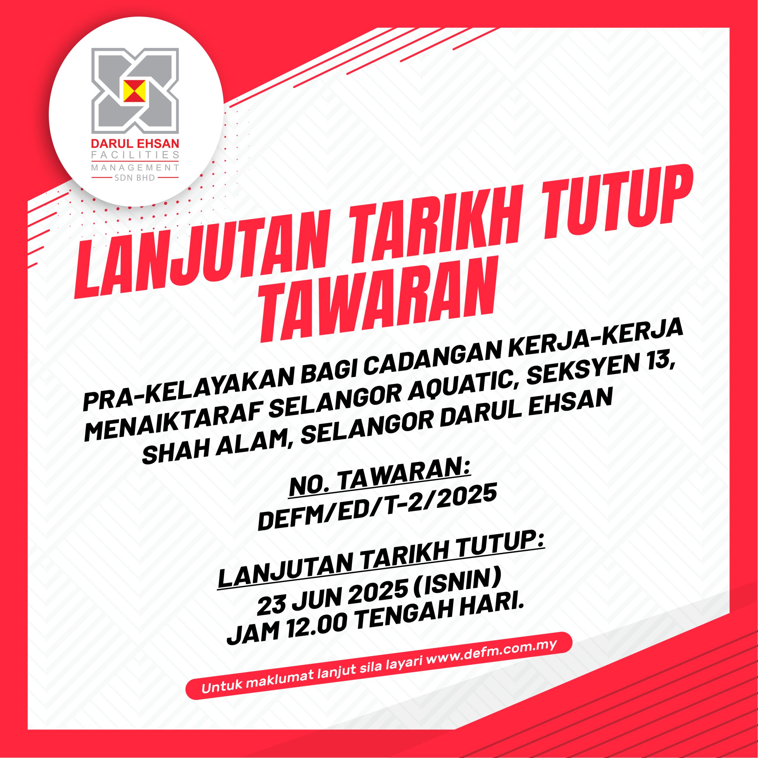 Sukacita dimaklumkan bahawa tarikh tutup bagi penyertaan tawaran pra-kelayakan telah dilanjutkan seperti berikut: